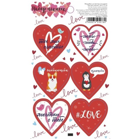 Наклейки для цветов и подарков "Ты мое счастье", 16 х 7,7 см