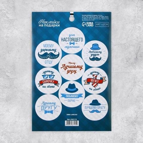 Наклейки на подарки «Для настоящего мужчины», 14× 21 см