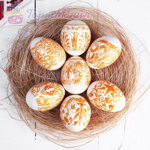 Пасхальная термоусадочная плёнка "Оранжевые узоры" на 7 яиц