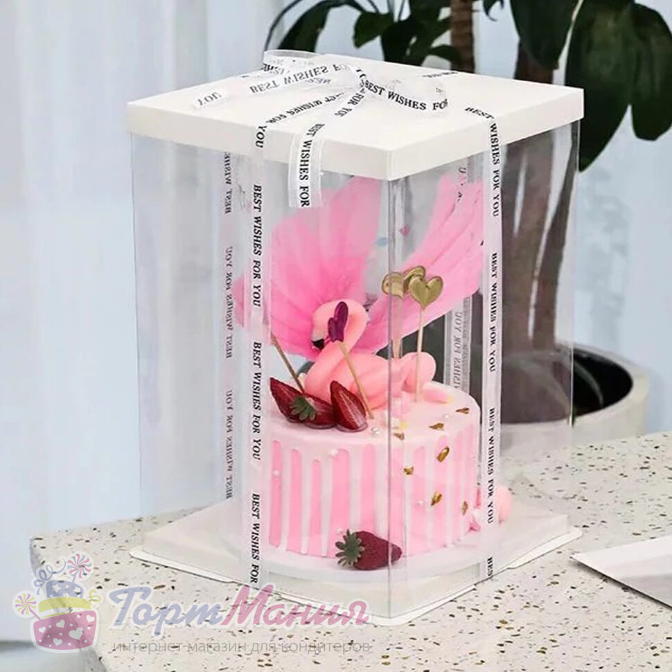 Прозрачная коробка для торта ПРЕМИУМ квадратная (белая) 30х30 h45