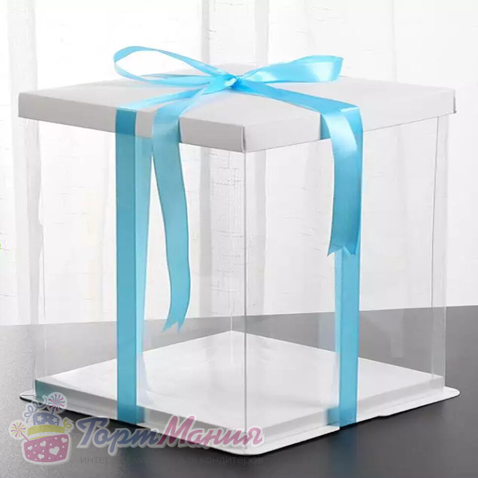 Прозрачная коробка для торта ПРЕМИУМ квадратная (белая) 38х38 h40