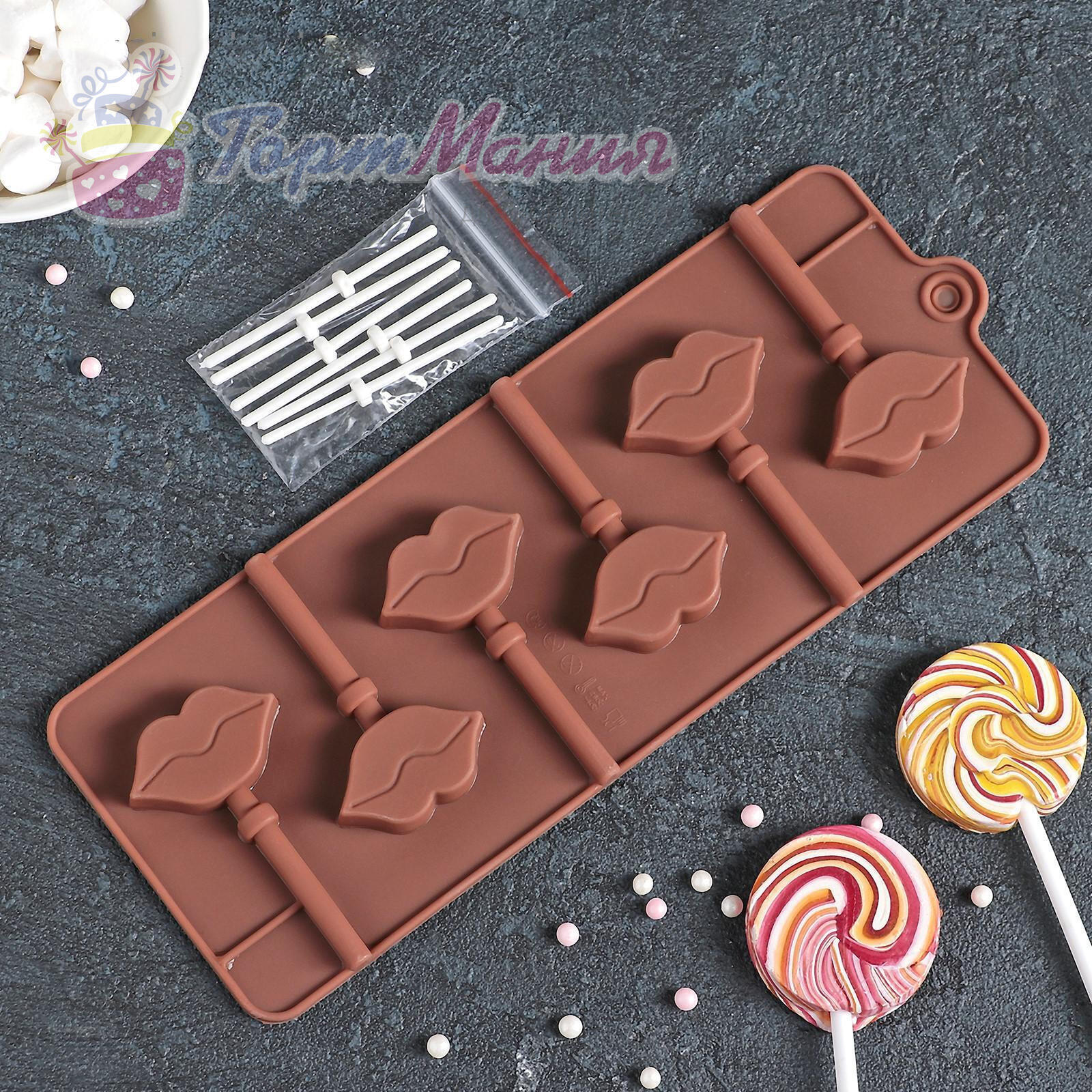 Силиконовая форма для леденцов «Губы», 6 ячеек