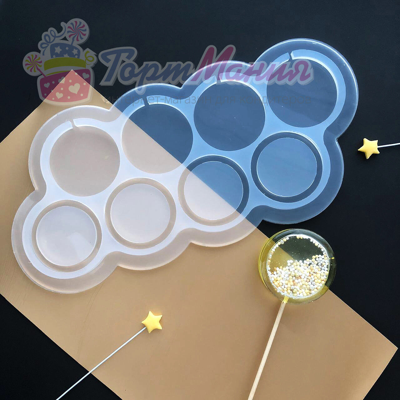Обратный звонокКруг 5 см толщина до 6 мм, "коробочка" 6 мм углубление 4 мм. Материал: силикон предназначенный для пищевой промышленности.