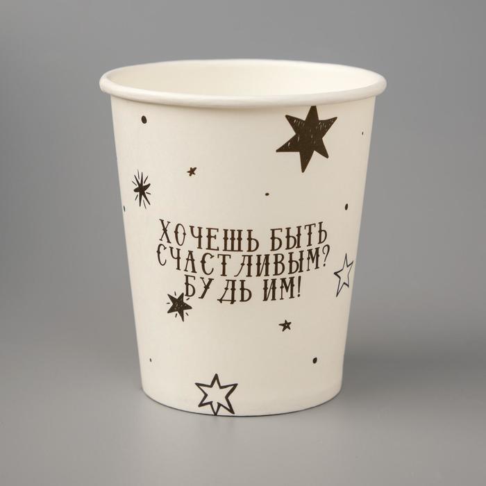 Стакан бумажный Хочешь быть счастливым? Будь им! белый, 250 мл, диаметр 80
