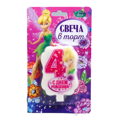 Свеча в торт цифра 4 для девочек «С Днем Рождения» Феи