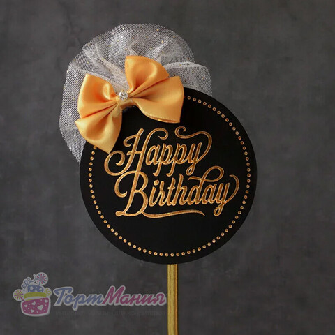 Топпер «Роскошь» Happy Birthday (круглый, черный с бантом)