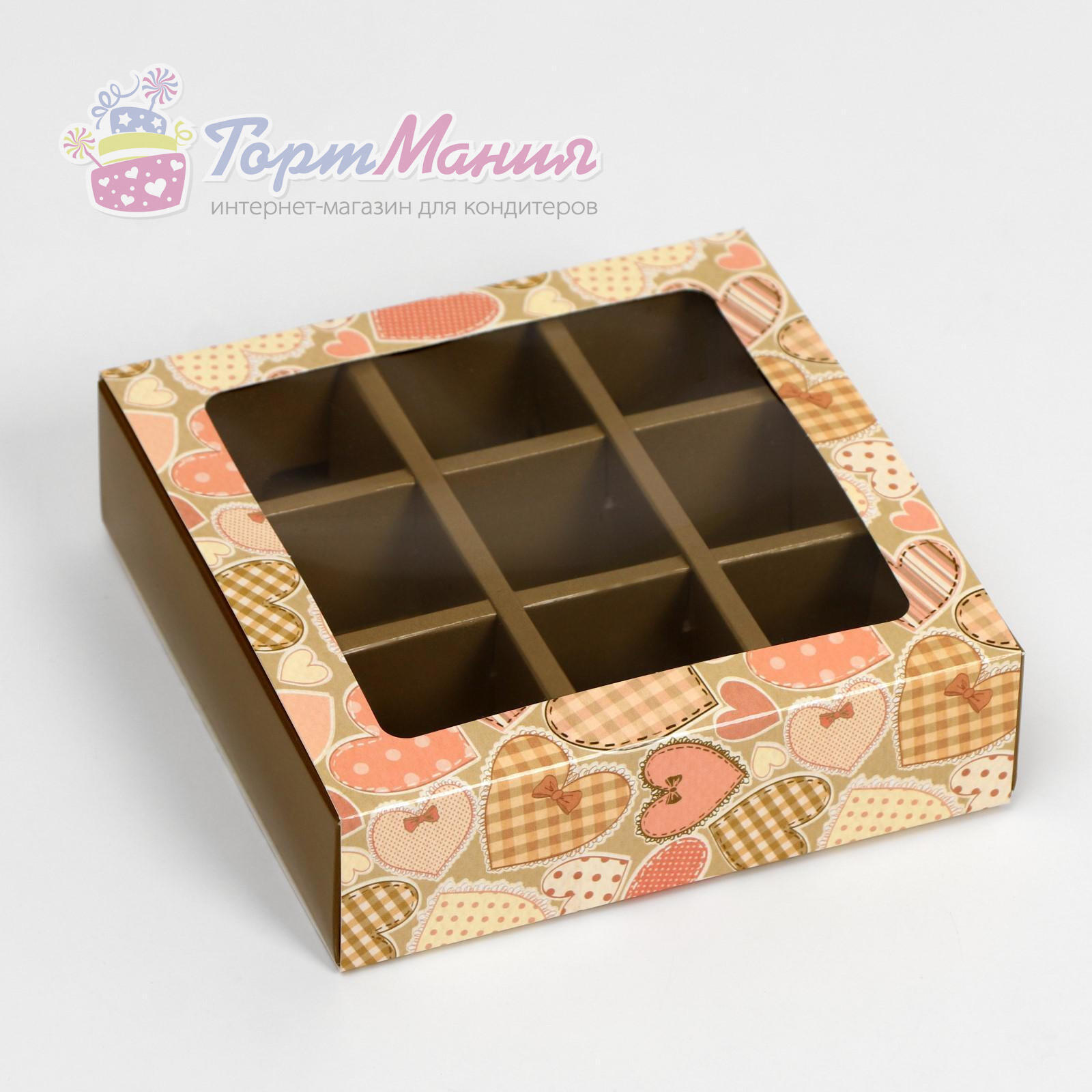 Упаковка для конфет на 9 штук, коричневая «Сердечки»
