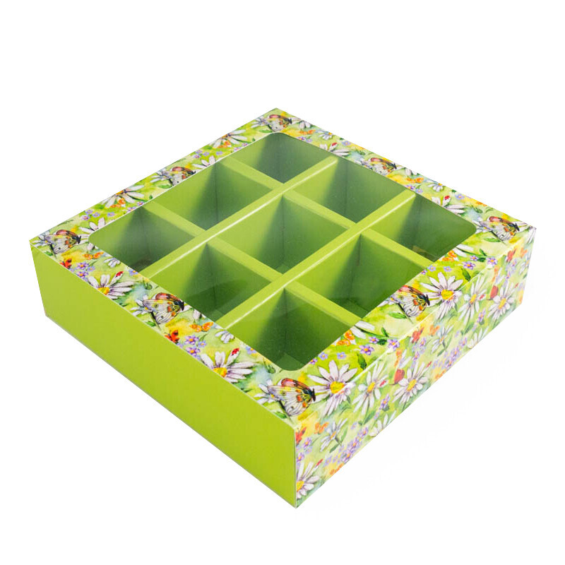Упаковка для конфет на 9 штук, зеленая «Ромашки»