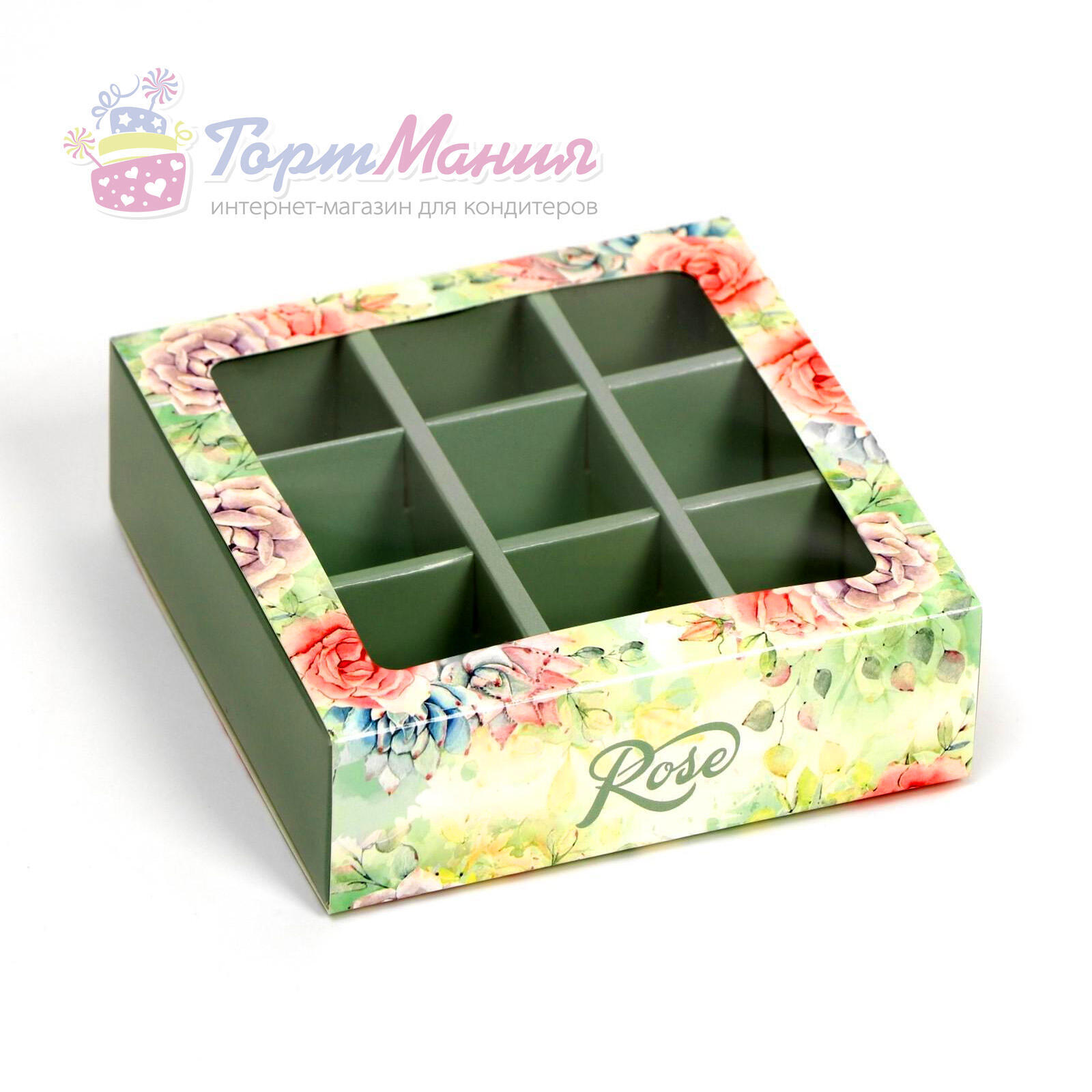 Упаковка для конфет на 9 штук, зеленая «Rose»
