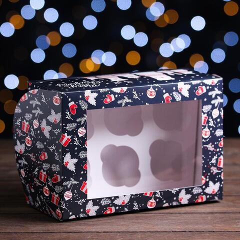 Упаковка на 6 капкейков с окном "Зимушка,зима", 25 х 17 х 10 см