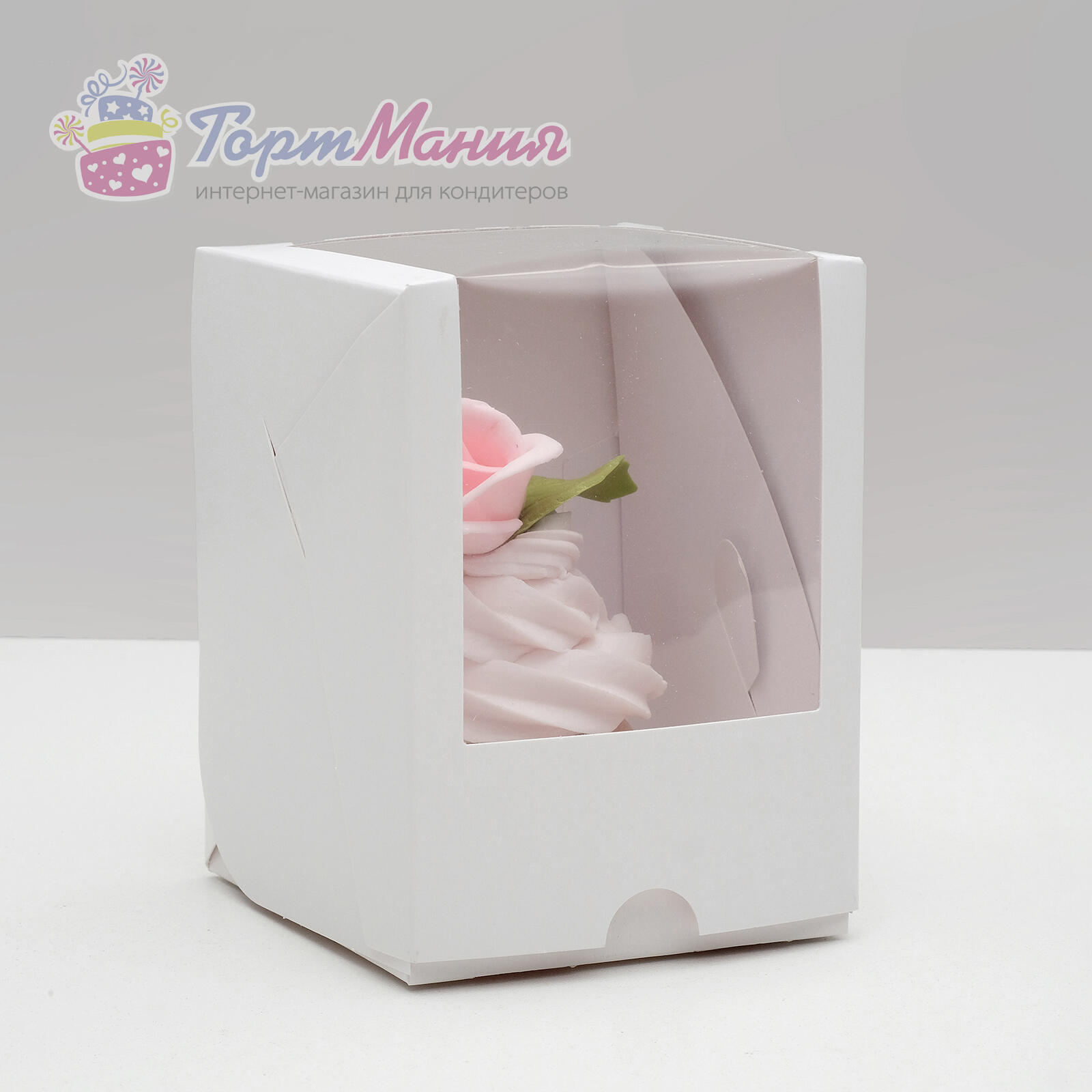 Упаковка под один капкейк с боковым окном, белая, 12,5 х 9,5 х 9,5 см
