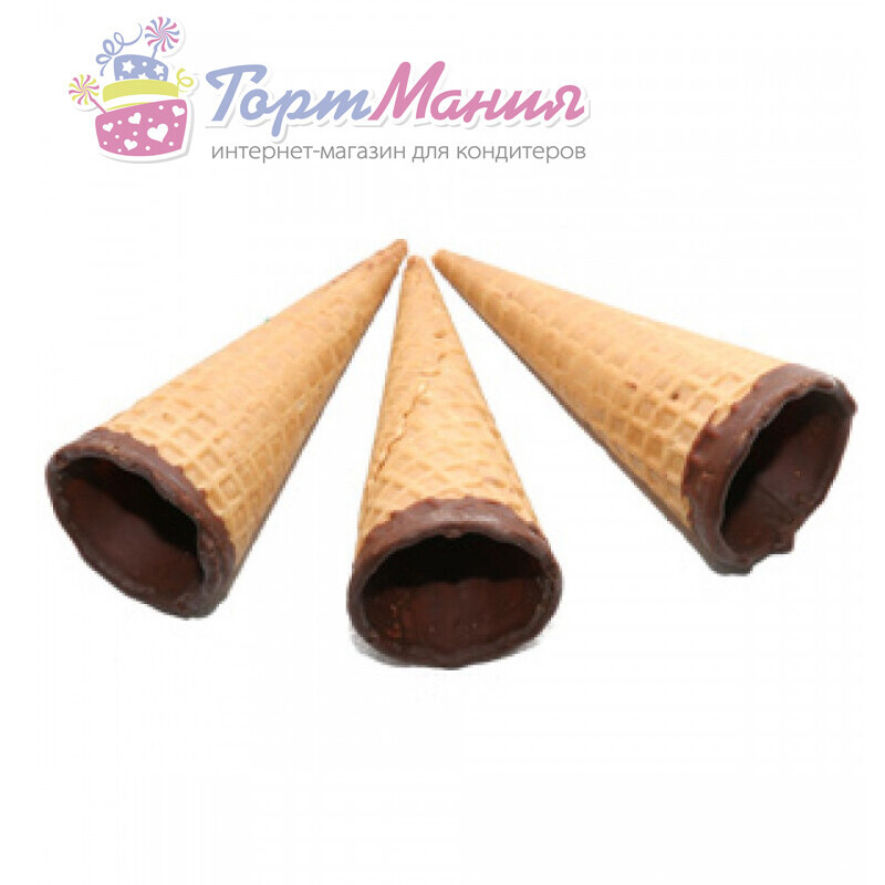 Вафельные рожки с ровным краем глазированный шоколадом, 3 шт