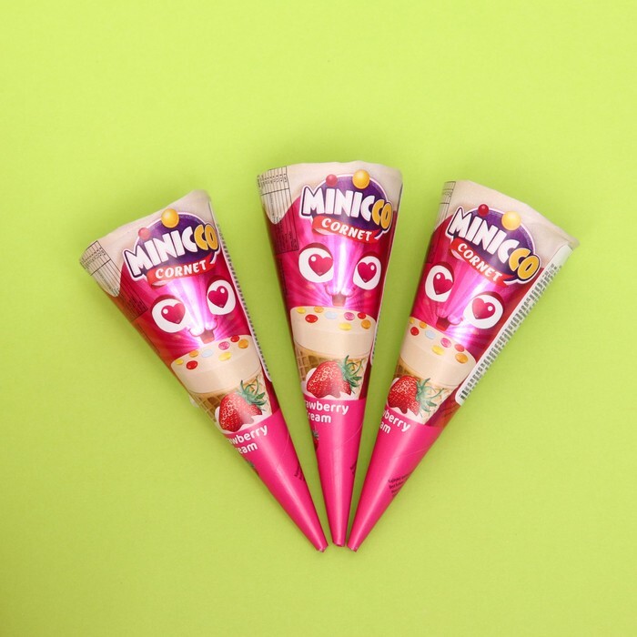 Вафельный рожок Minicco Cornet Strawberry молочный шоколад Клубника, 25