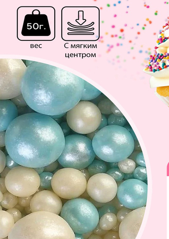 Воздушный рис в цветной кондитерской глазури "БЛЕСК НЕЖНЫЙ" (Голубой, белоснежный), 50 г