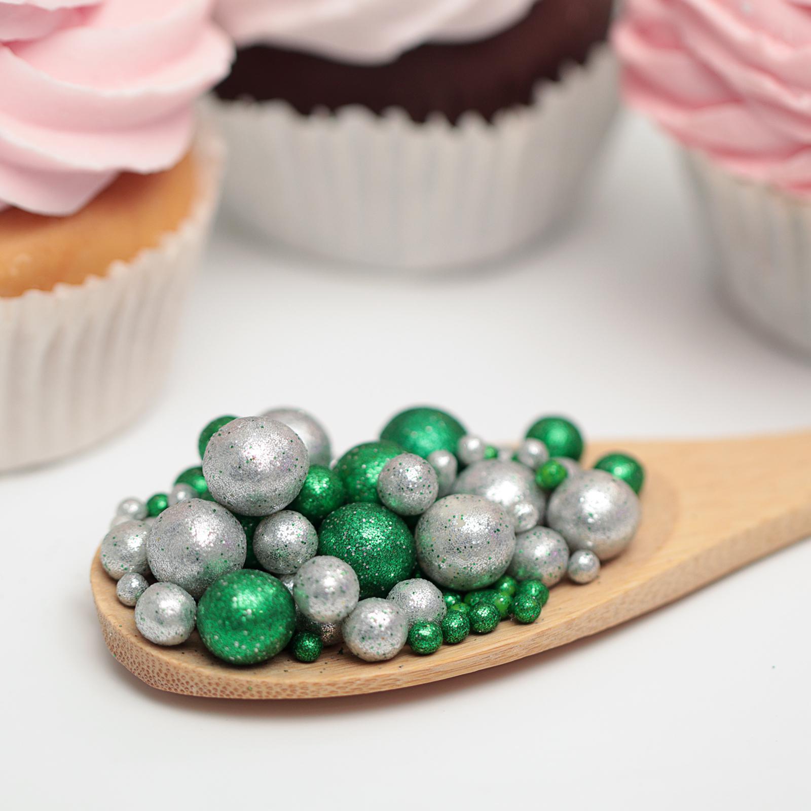 Воздушный рис в цветной кондитерской глазури, БЛЕСК зеленый/серебро, 50 г