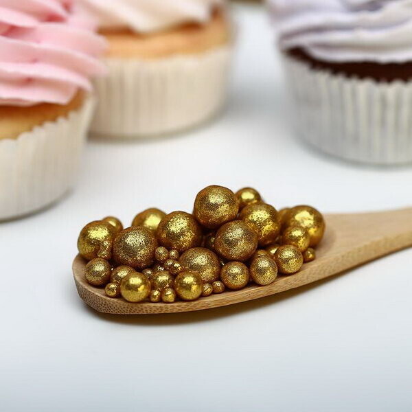 Воздушный рис в цветной кондитерской глазури, БЛЕСК золото 50 г