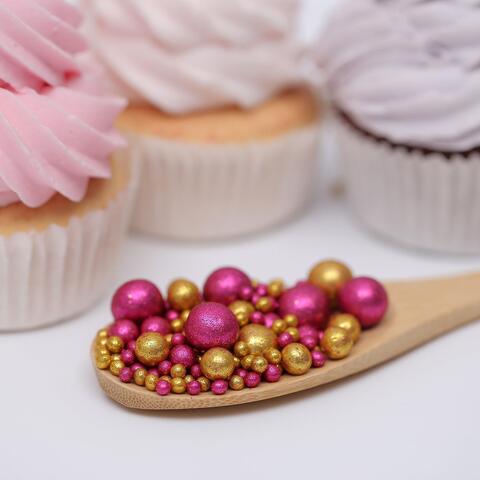 Воздушный рис в цветной кондитерской глазури, БЛЕСК золото/фуксия, 50 г