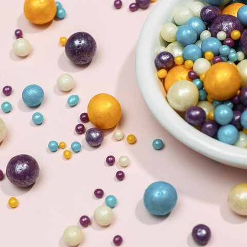 Воздушный рис в цветной кондитерской глазури, золотая, голубая, сиреневая, серебро, 50 г